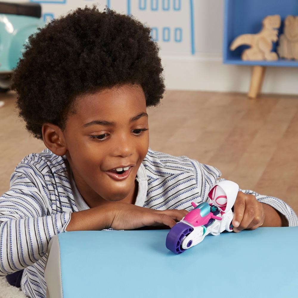?SUPER HERO FIGURE AND MOTORCYCLE: This Spidey and His Amazing Friends toy comes with a Ghost-Spider figure and super cool motorcycle toy that the figure can ride for the ultimate imaginative play