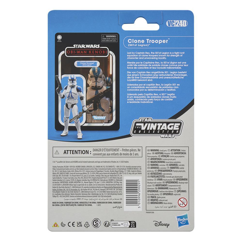 Celebrate the legacy of Star Wars with premium vehicles, playsets, and action figures from Star Wars The Vintage Collection. (Additional products each sold separately. Subject to availability.) Based on a clone trooper from Star Wars: Obi-Wan Kenobi, this 3.75-inch-scale figure makes a great addition to any fan??s collection. Inspired by the original line, these collectibles feature premium detail and design across product and packaging, as well as collector-grade deco that fans have come to know and love. May the Force be with you!
