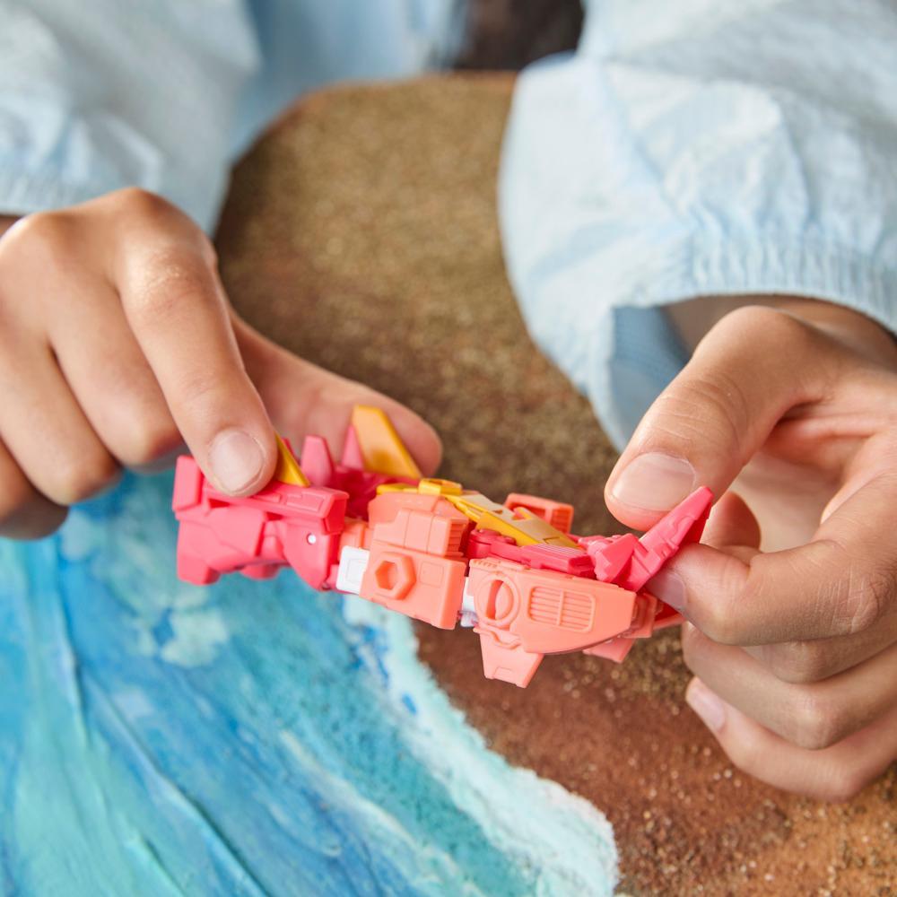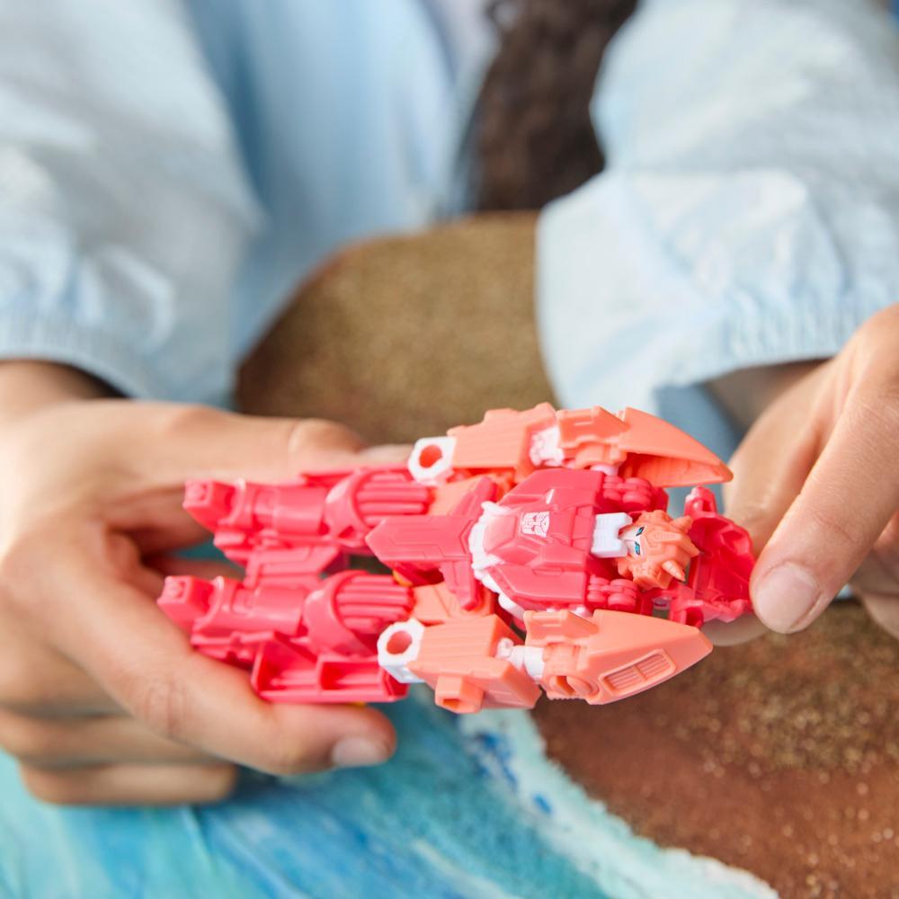 In Transformers CYBERWORLD, kids decide what happens ?? and it starts with awesome toys like the Elita-1 Cyber Changers figure. This 4-inch (10 cm) Elita-1 toy changes from robot to speedboat mode in just 3 steps that are simple enough for kids ages 6 and up. Give kids?? storytelling power a boost with additional CYBERWORLD toys (each sold separately, subject to availability), and discover unique characters, alt modes, environments, and more. Fans of Transformers collectibles and newcomers alike will love discovering this take on the Transformers universe, where the only constant is change.