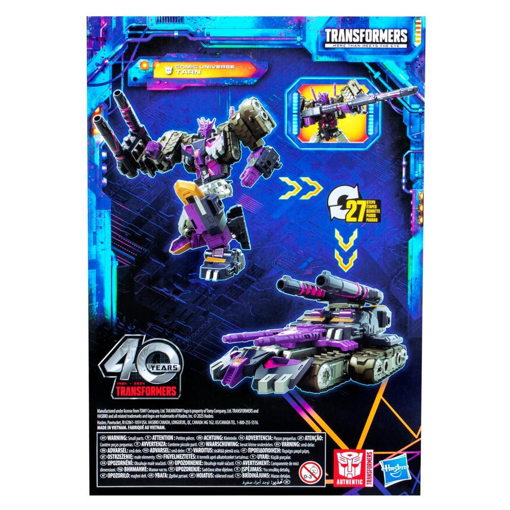 Unite your favorite characters from across the world of Transformers robots into your collection with the Transformers Legacy United Voyager Class Comic Universe Tarn action figure! This 7-inch Comic Universe Tarn action figure converts between robot and tank modes in 27 steps. Gear up for battle with the included blaster accessory that attaches to the figure in both modes. The Comic Universe Tarn figure is inspired by the character from the Transformers IDW comic book universe and features articulated head, arms, and legs for awesome action poses. Celebrate the last 40 years of Transformers history with Transformers Legacy action figures. Transformers Legacy opens the portal to a whole new universe of — More Than Meets the Eye — bringing together every Transformers generation like you??ve never seen before. Collect and combine different characters to create your ideal Legacy lineup.