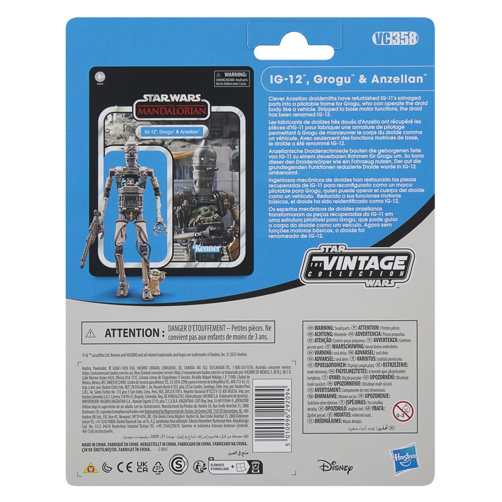 Celebrate the legacy of Star Wars with premium vehicles, playsets, and action figures from Star Wars The Vintage Collection. (Additional products each sold separately. Subject to availability.) Based on IG-12, Grogu & an Anzellan from Star Wars: The Mandalorian, these 3.75-inch-scale figures make a great addition to any fan??s collection. Inspired by the original line, these collectibles feature premium detail and design across product and packaging, as well as collector-grade deco that fans have come to know and love. May the Force be with you!